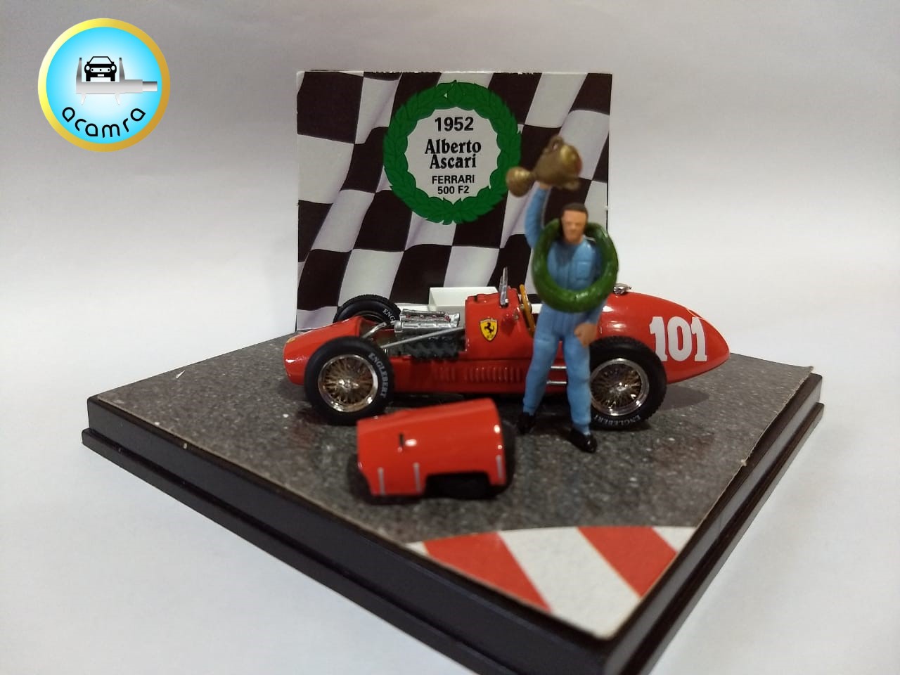 Diego Abiuso (Roldán), volviendo a la década del ’50, nos muestra este Ferrari 500 F2 (Vitesse, 1/43). El Ferrari 500 es un coche de carreras de Fórmula 2 diseñado por Aurelio Lampredi y utilizado por Ferrari en 1952 y 1953. Con este modelo Ascari se proclama campeón de F1 en 1952.