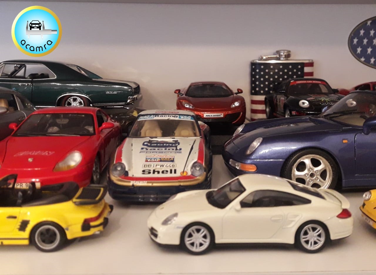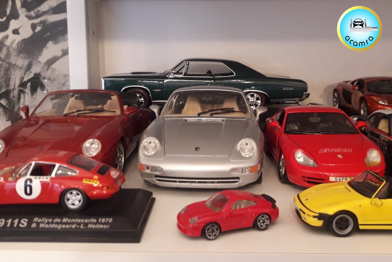 Fernando Palermo (Bs. As.), invitado por Agote, muestra algunos de sus modelos más apreciados, que dieron origen a su colección. Corvette y Porsche en escala 1/18, Bugatti en escala 1/24.