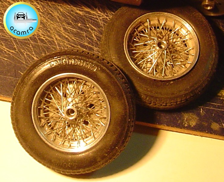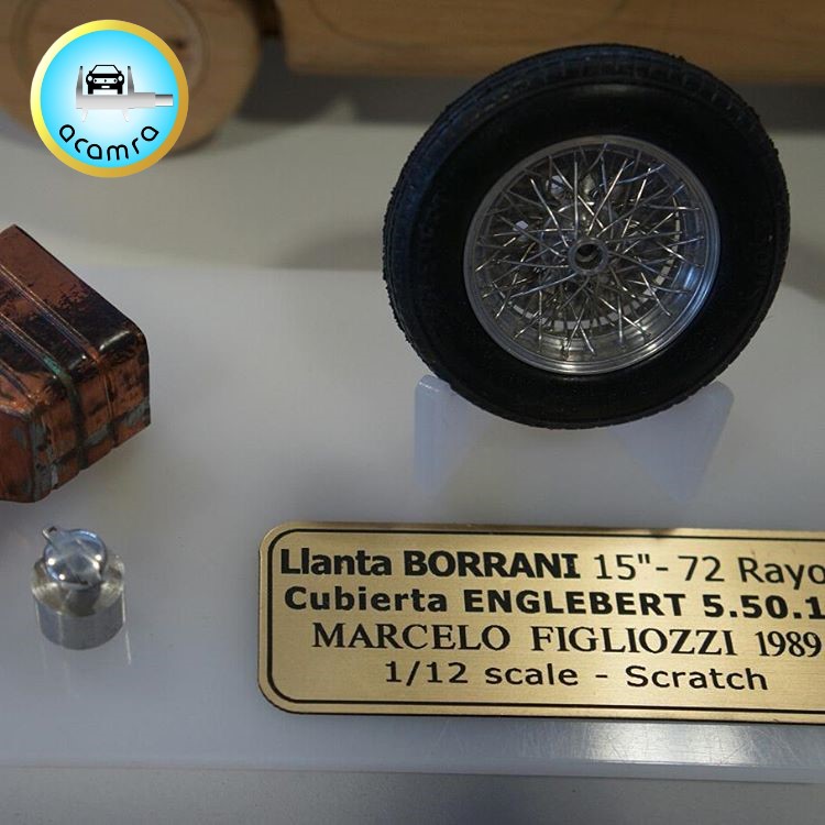 Marcelo Figliozzi (La Plata), comparte neumático marca Englebert medida 5.00.15 escala 1/12. Llanta Borrani de 15″, 72 rayos, escala 1/12. Los hizo para la Ferrari 166 MM de 1950 escala 1/12 que tiene a medio fabricar.