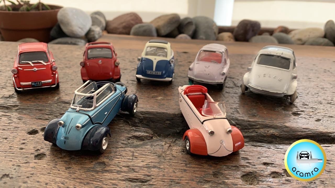 Luis Teixeira (Bs. As.), armó una temática Ratones! Heinkel Corgi Toys; Messerschmitt Vittesse; Guiralu Isetta de Velam francés; BMW Isetta de Schuco; De Carlo de colección Salvat.