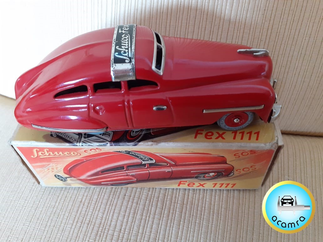 Eduardo Martin (Bs. As.), comparte con nosotros un Schuco Fex 1111. Impecable con caja. Ruedas grises; fabricado en Alemania entre 1951 y 1965. Con cuerda.