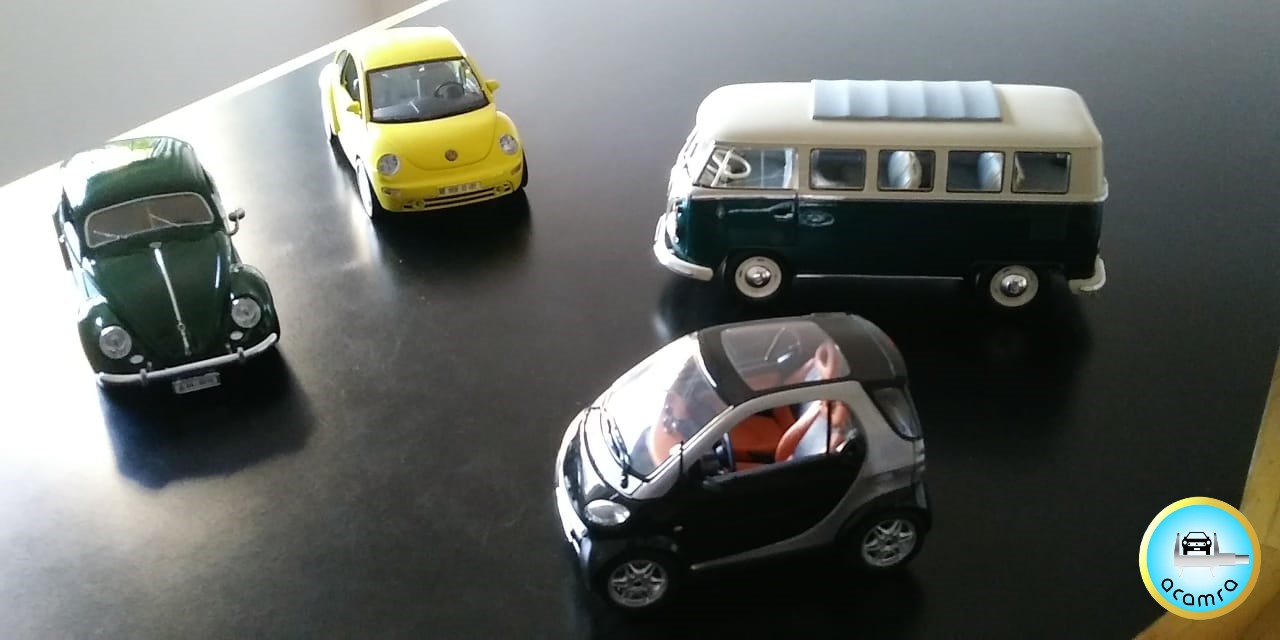 Ariel Mignini (Rosario), nos presenta estos 4 modelos, titulados “Alemanes Urbanos”: encontramos una clásica VW Combi T1, en versión bus; un escabajo de fines de los ’50; un New Beettle, y un moderno Smart, auto citadino si los hay.