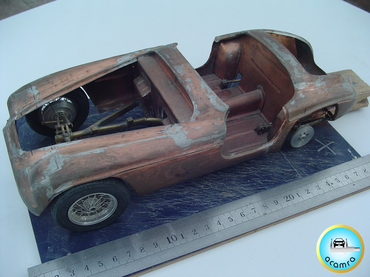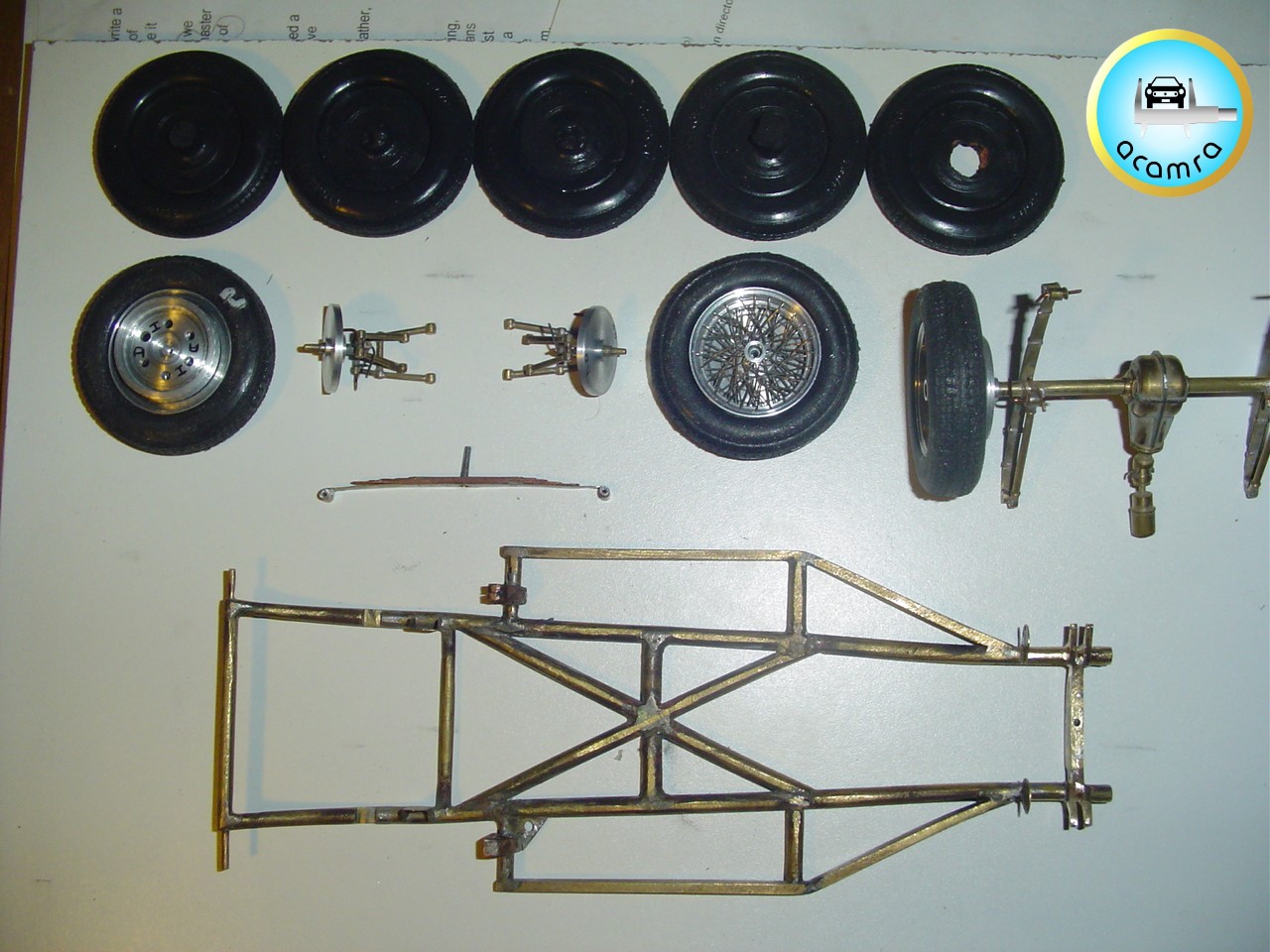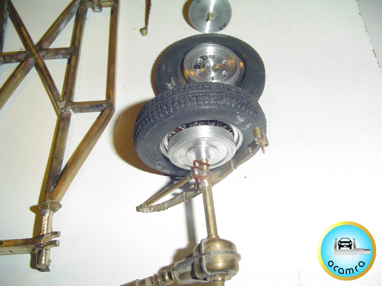 Marcelo Figliozzi (La Plata), en pleno proceso de construcción, chasis, suspensión y carrocería Ferrari 166 MM escala 1/12 Full Scratch.