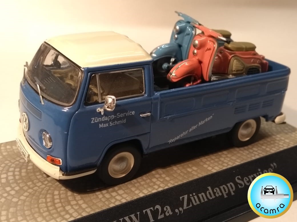 Daniel Garay (Bs. As.), nos arma una temática dedicada al transporte de motos: (1/43). Matchbox Super Kings. Bike transporter «Honda Team»; (1/43). Schuco: Tempo Matador «Victoria Werke»; (1/43). Premium Classixx: Mercedes Benz L319 «Werbewagen PUCH»; (1/43). Premium Classixx: VW T2a «Zündapp Service».