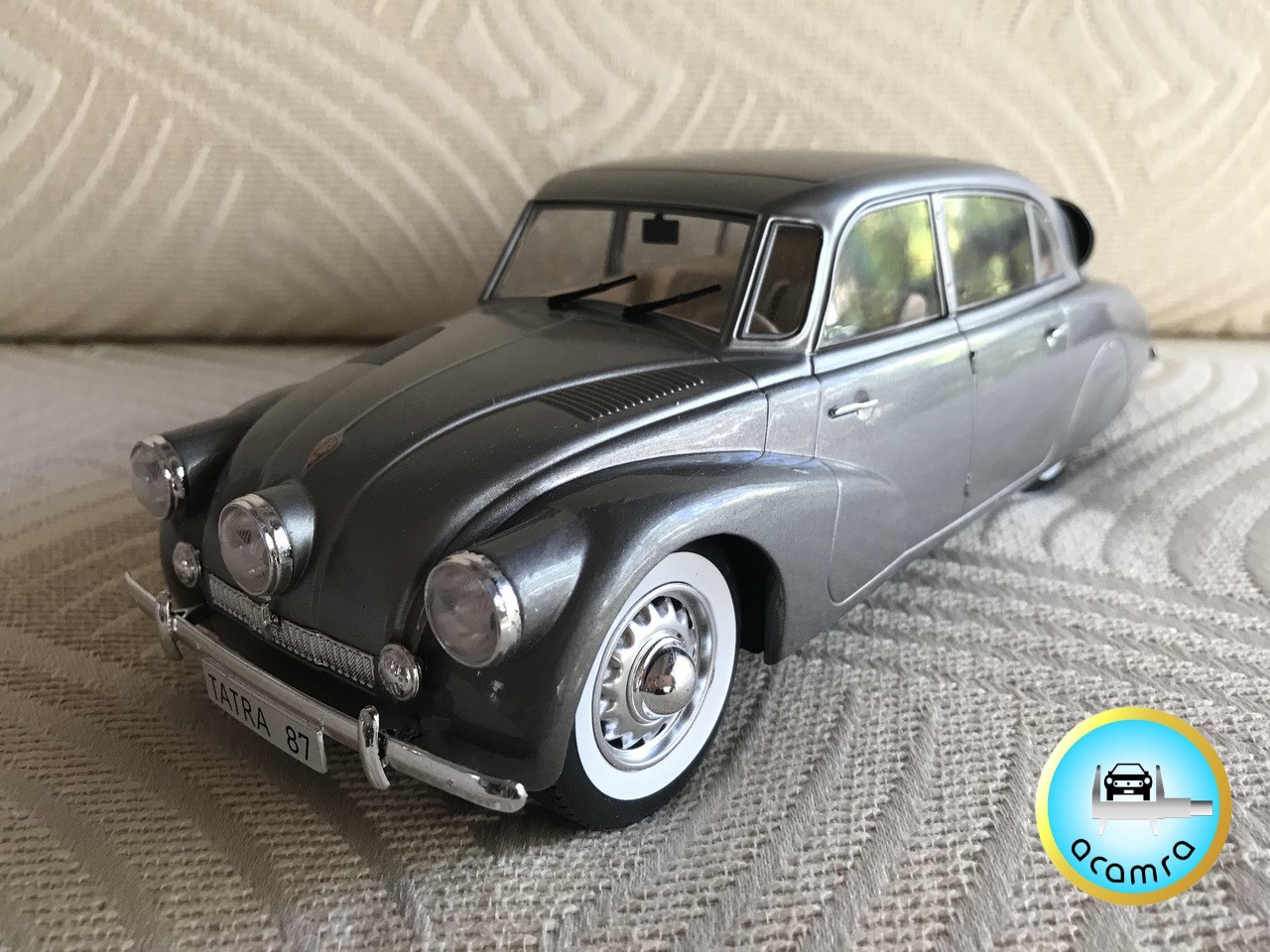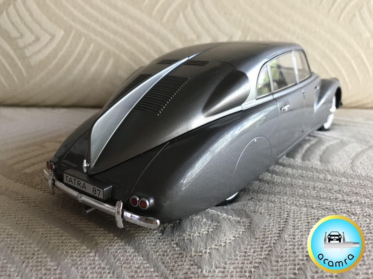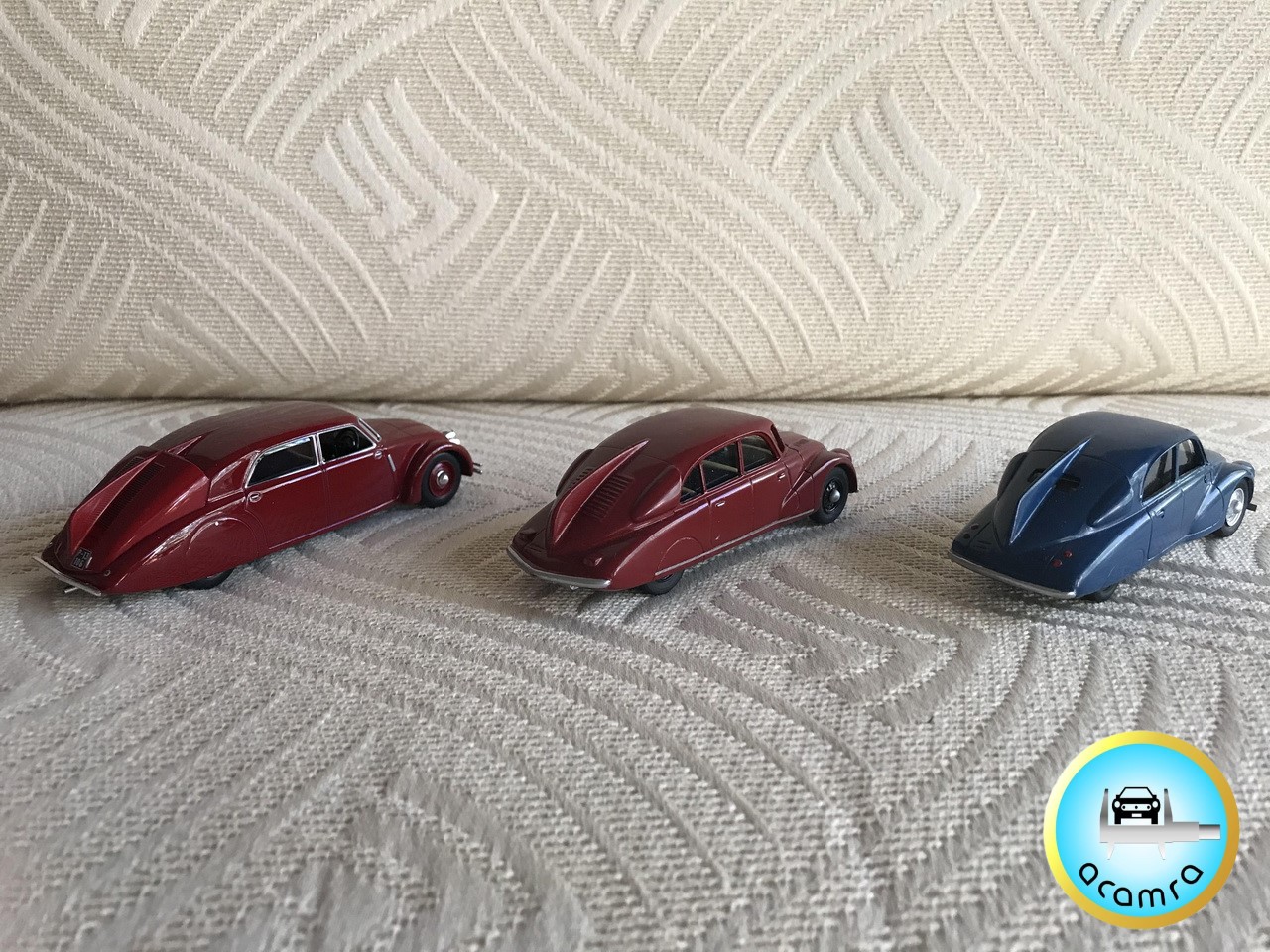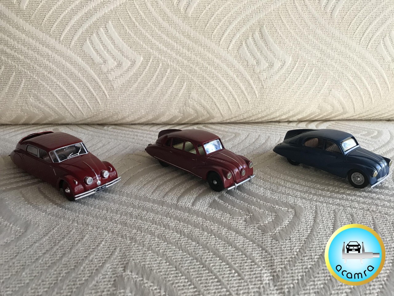Eduardo Ramirez Calonge (Bs. As.), hace una selección de los modelos aerodinámicos de la marca Tatra. En primer lugar, en escala 1/18, un T87 de la firma Modelcar Group (diecast sin aperturas); complementando y en 1/43, el T77 prototipo (IXO, diecast), T87 y T97 ambos de la marca checa ZZ Models en resina.
