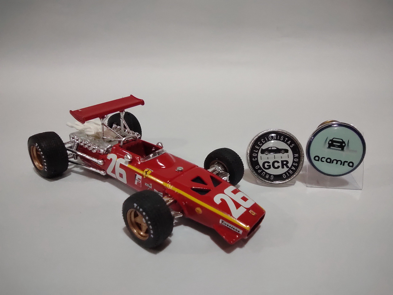 Diego Abiuso (Roldán), nos muestra sus recientes incorporaciones de modelos de competición y uno muy ligado al rally mundial de la década del ´80. Todos ellos en escala 1/43: Ferrari 312 de 1968 (Brumm), Mercedes Benz W196 de 1954 (Brumm), Mc Laren M23 de 1974 (Altaya) y Lancia Delta HF Club Italia (HPI).