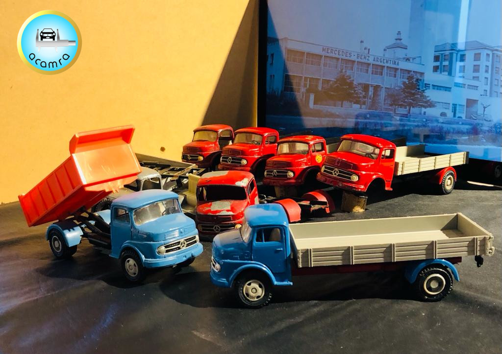 Dario Dolfi (Bs. As.), comparte un un lote de Camiones Mercedes Benz Buby en escala 1/40, en diferentes estados, todos con faltantes, en la que recreó un sector de desguace. Todos ellos prestos a ser restaurados.