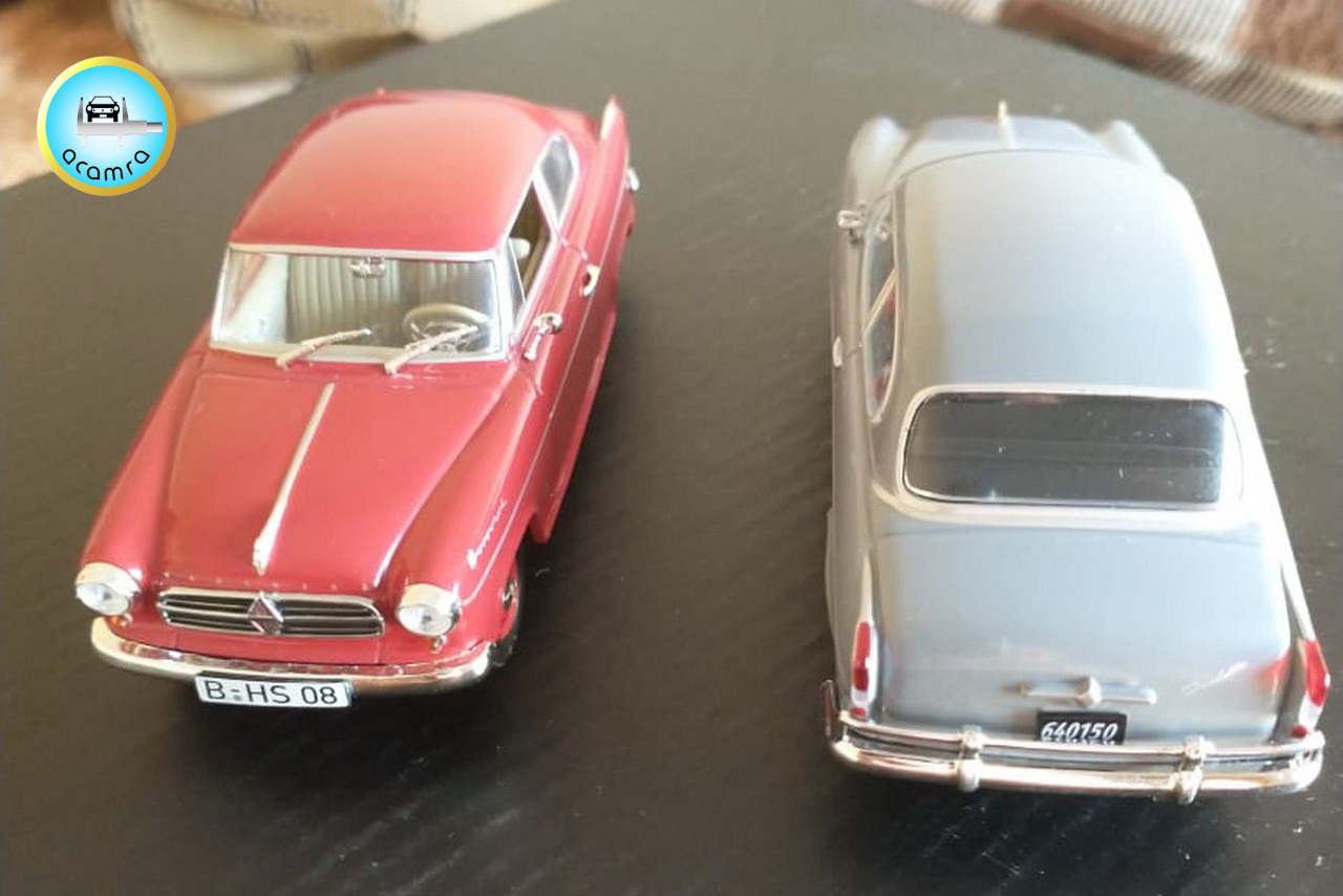 Norberto Campodónico (Bs. As.), hizo un pequeño comparativo entre dos moldes de un modelo bastante conocido por todos nosotros. El Borgward Isabella sedán, en rojo un Norev en escala 1/43 configurado para el mercado europeo y el gris el Salvat de la colección “Autos Inolvidables Argentinos”; donde podemos observar similitudes y diferencias entre las do configuraciones.