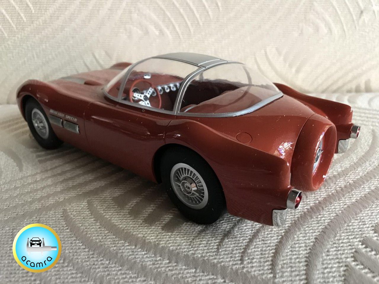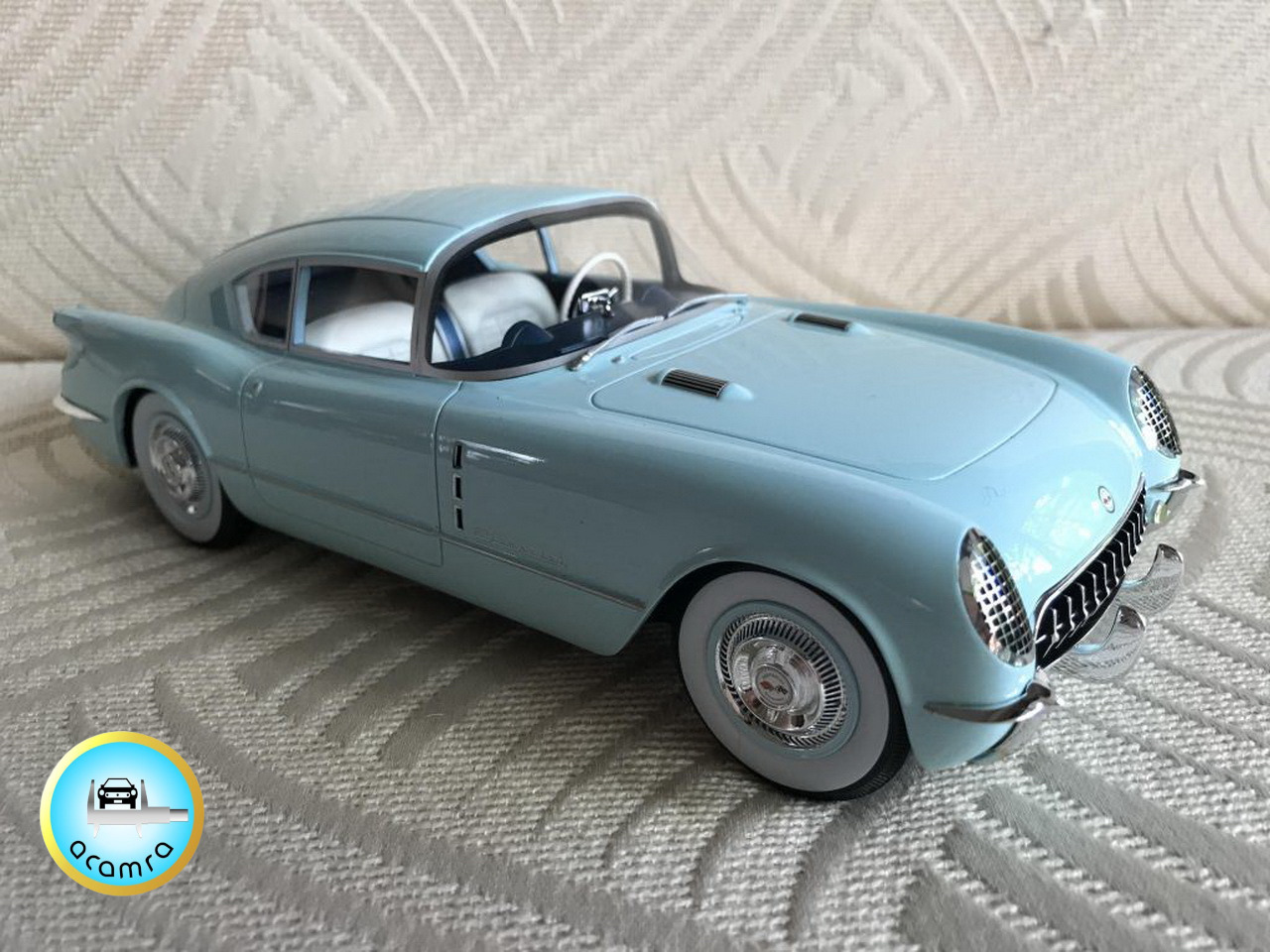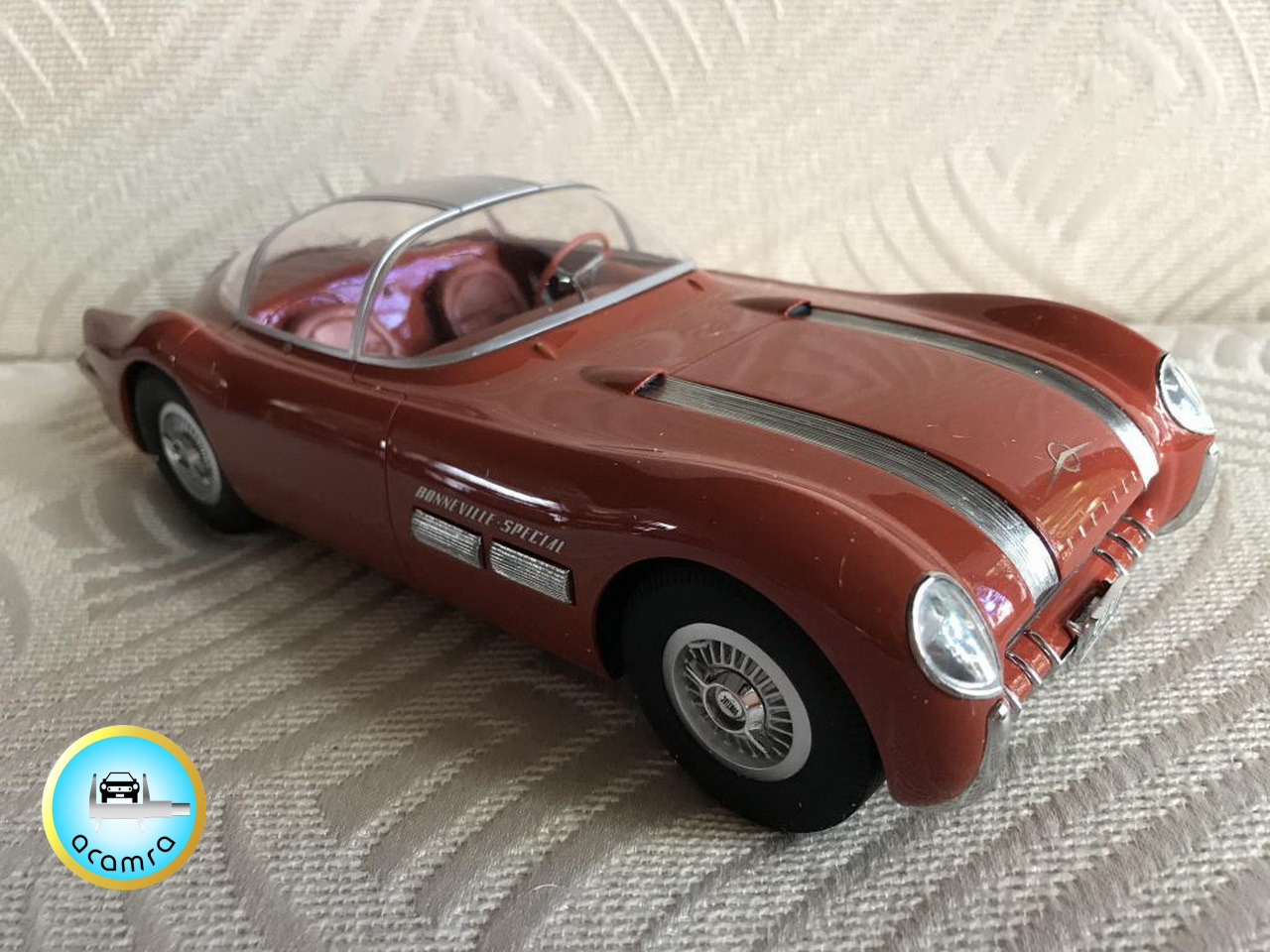Eduardo Ramirez Calonge (Bs. As.), en escala 1/18 y en resina, traigo fabricados por la empresa alemana BoS (Best of Show), dos magníficos exponentes de los llamados dream cars norteamericanos (autos de ensueño) o show cars (autos de exhibición). Chevrolet Corvair 1954, cupé fastback (con frente de Corvette). Pontiac Bonneville Special 1954 con techo de plexiglas.