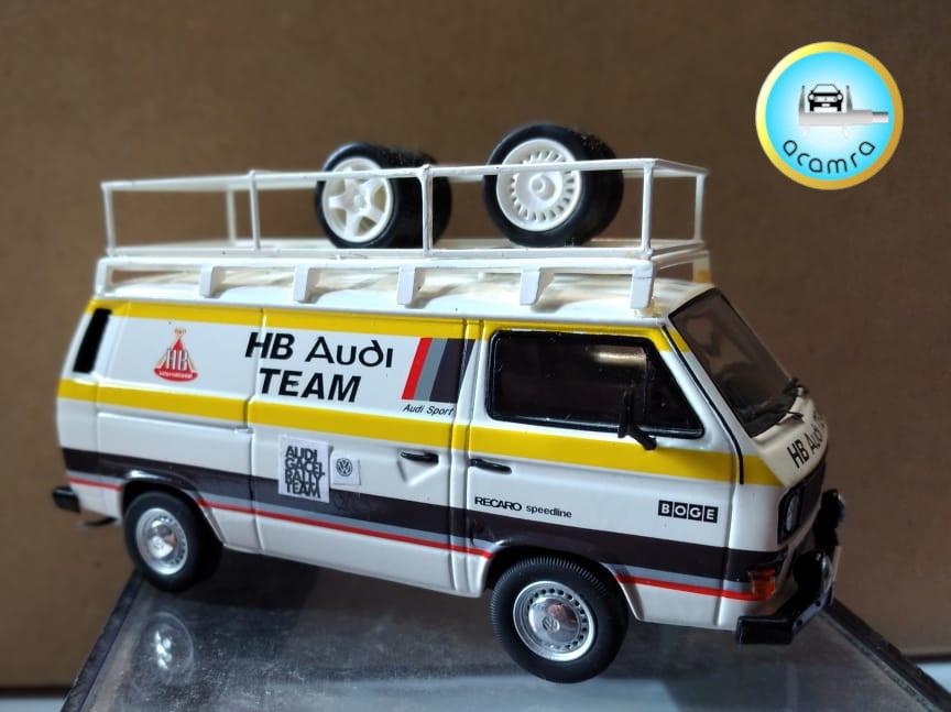 Carlos Occhi (Santa Fe), en este caso ha elegido un modelo de servicio del Equipo Audi, el modelo en cuestión es una VW T3b de la marca Premium Classixxs, en escala 1/43… cabe señalar que está representada como estuvieron en el Rally de Argentina 1984, 1era fecha mundial en Córdoba.