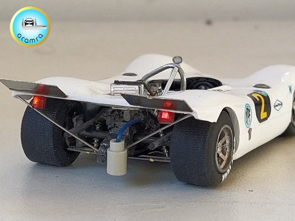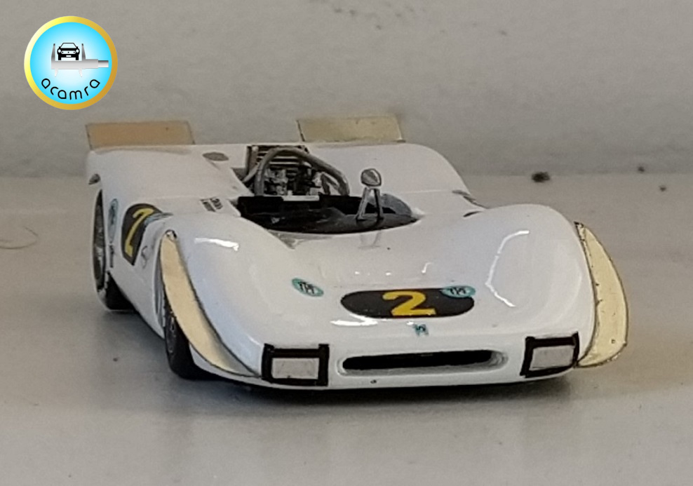 Eduardo Felizia comparte fotos de un Berta LR armado por Gustavo Ambrosio. La particularidad de este modelo es que al no tener faros y éstos eran requeridos para la competencia (1000 km Bs As), debieron hacer una cirugía de emergencia, cortando el borde de ataque de la trompa e insertando un par de faroles de Renault 12. El modelo refleja las cicatrices de esta cirugía.