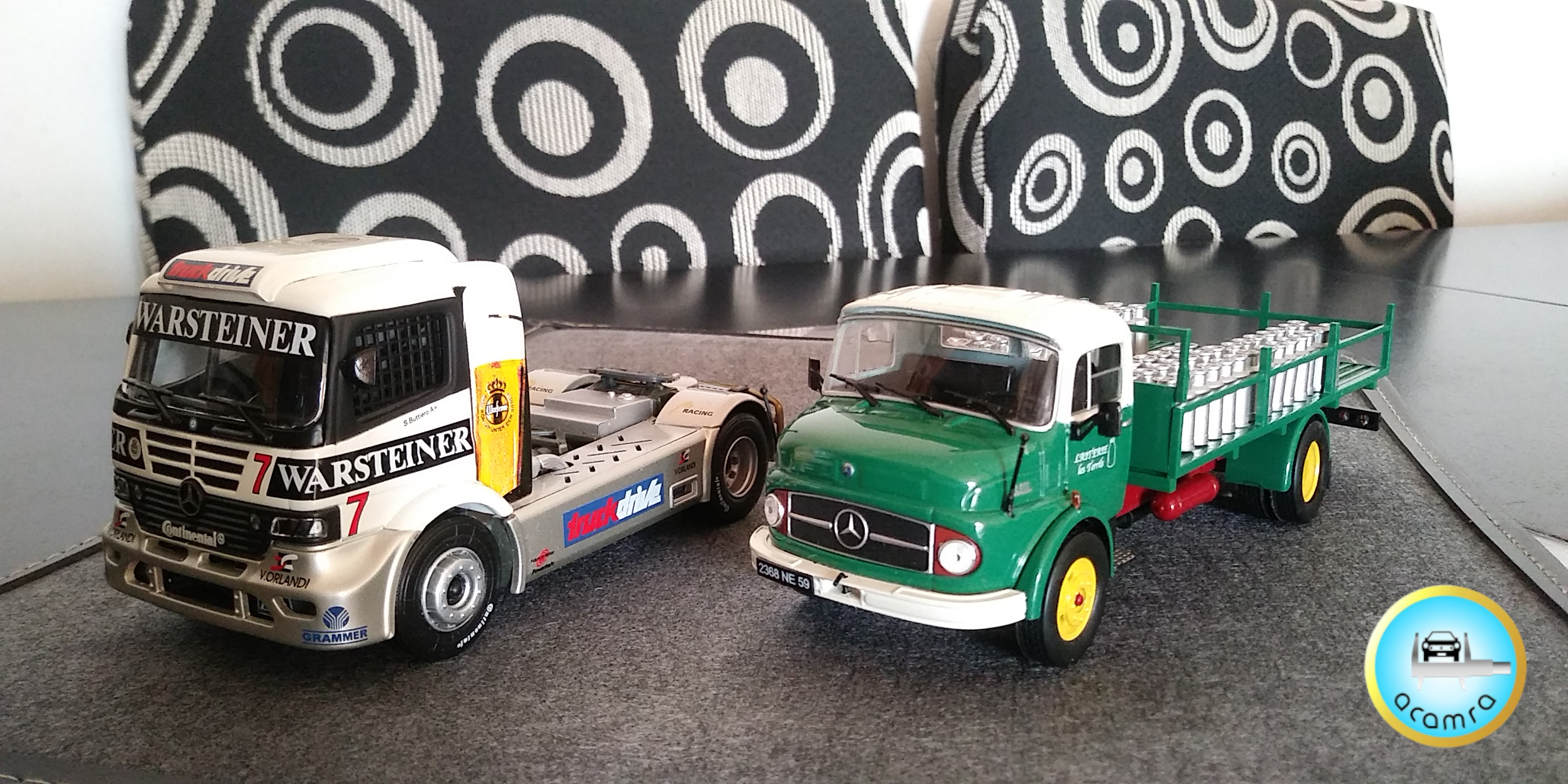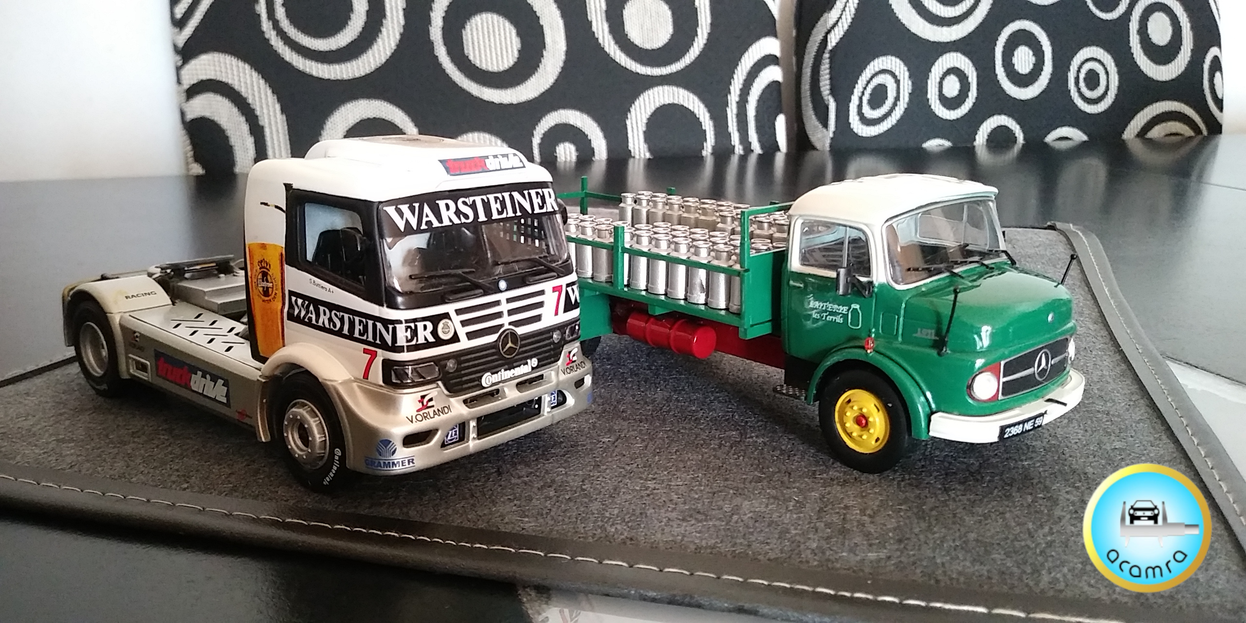 Hernán Costa (Bs. As.), comparte con nosotros dos modelos de Mercedes Benz destinados al trabajo y la competencia en escala 1/43. El 911 lechero es de la marca IXO. El de competición un Actros de la firma High Speed.