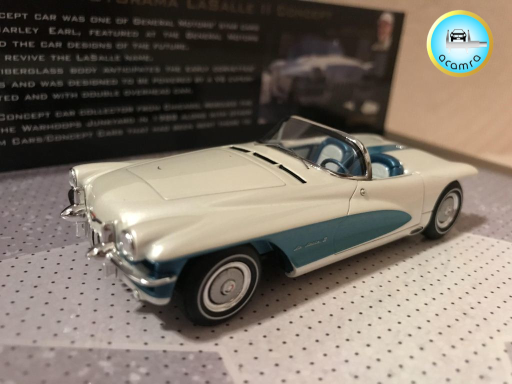 Eduardo Ramírez Calonge (Bs. As.), p ara esta reunión virtual, decidí aportar un mismo auto, en dos escalas: 1/43 (muy bien reproducido), pero con mucho más detalle en 1/18. Se trata del La Salle II 1955, presentado como “Cadillac La Salle”, en aquellos fastuoso shows de los años 50, que GM denominó “MOTORAMAS” y en los que se presentaban autos concepto como el presente y la línea de los nuevos de serie de los autos de cada año.