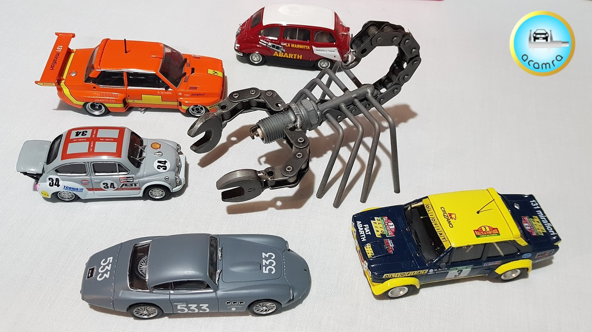 Gustavo Bomben (Bs. As.), comparte con nosotros estos Abarth de diferentes épocas y fabricantes. Se destaca entre ellos el escorpión realizado en modo artesanal hecho con partes mecánicas. Las miniaturas son escala 1/43.