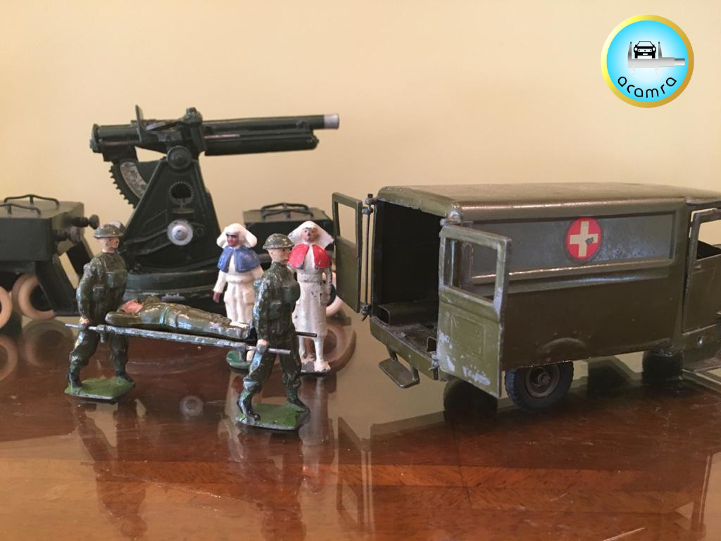 Gustavo Santarelli (Bs. As.), Camión de transporte pesado con cañón antiaéreo y ambulancia militares por Britains (England). Escala 1:32. El camión con cañón de 1938 y la ambulancia de 1946.