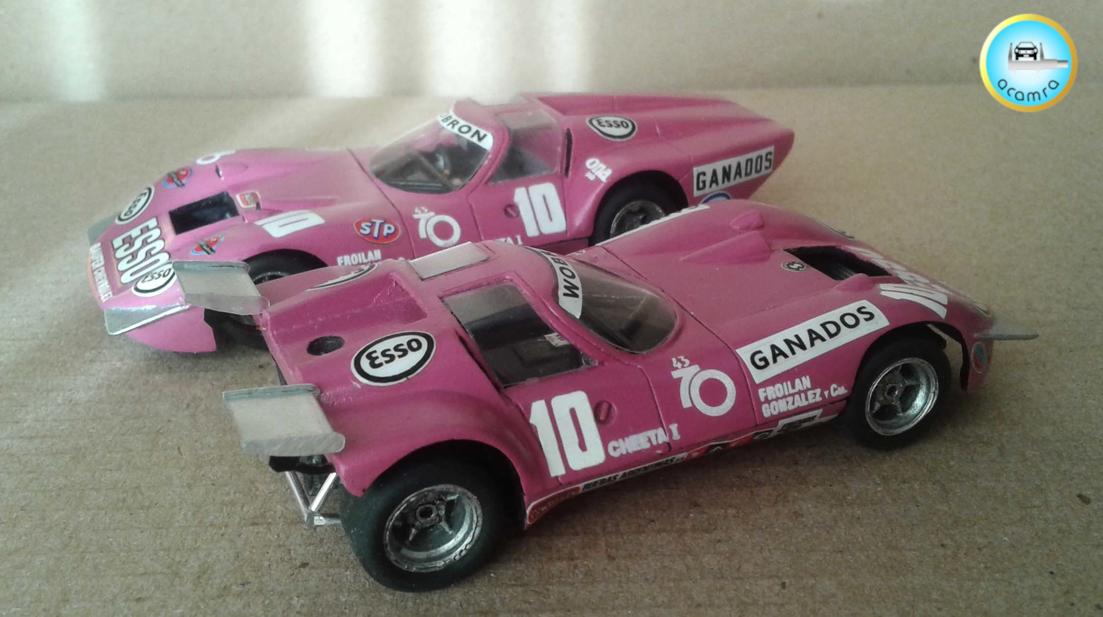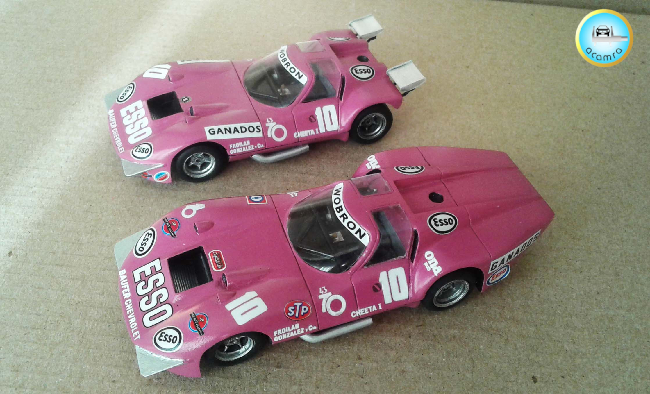 Fernando Augé (Bs. As.), Baufer Chevrolet (Cheeta I) Sport Prototipo argentino. Andrea Vianini.1970. Su llamativo color y sus destacadas actuaciones, aunque sin triunfos, no pasan inadvertidas. Tenía una cola larga postiza que se usaba en circuitos veloces. He aquí ambas versiones. Modelo: Rombastikutz; escala 1:43 .